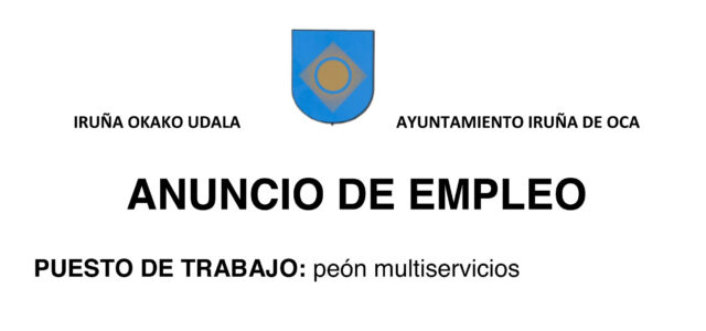 El Ayuntamiento de Iruña de Oca oferta una plaza de peón multiservicios. Si estás interesado en la misma, eres residente en el municipio, te encuentras en situación de desempleo, tienes […]