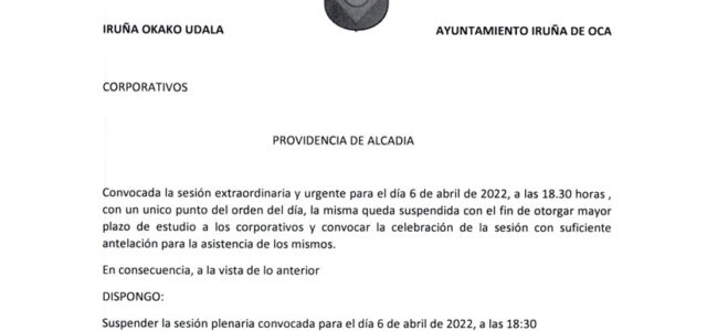 La sesión plenaria extraordinaria prevista para el 6 de abril ha quedado suspendida con el fin de otorgar mayor plazo de estudio a los corporativos y convocar la celebración de […]