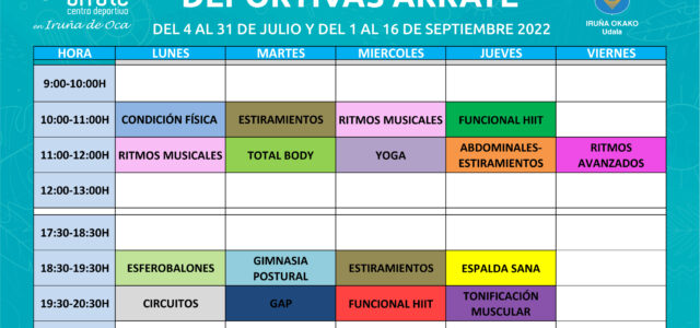 Horarios de verano de Actividades Deportivas en Arrate
