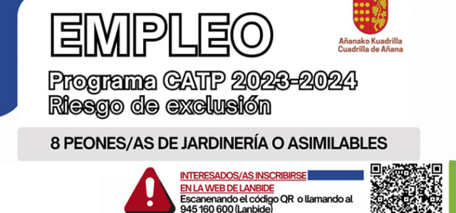 Empleo Programa CATP 2023-2024 21 de diciembre de 2023 Empleo Programa CATP 2023-2024 8 PEONES/AS DE JARDINERÍA O ASIMILABLES Duración contrato: 6 meses de duración.[…]