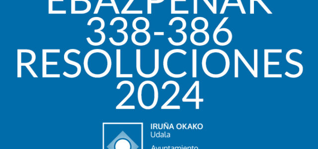 Resoluciones desde la 338 a la 386 correspondientes al año 2024 4 de julio de 2024 Resoluciones desde la 338 a la 386 correspondientes al año 2024 Listado de resoluciones correspondientes a los plenos recientemente celebrados.