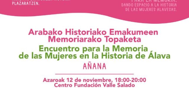 La Diputación Foral de Álava, en colaboración con Laia Eskola y Errotik Kooperatiba Feminista, ha puesto en marcha el proceso Encuentros para la Memoria de las Mujeres en la Historia […]