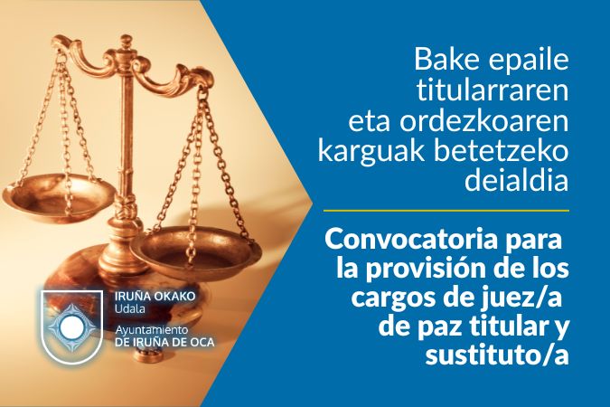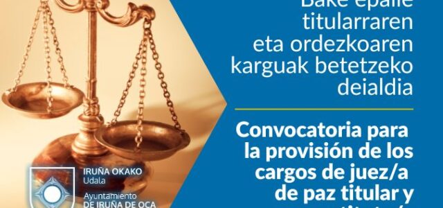 Convocatoria para la provisión de los cargos de juez/a de paz titular y sustituto/a