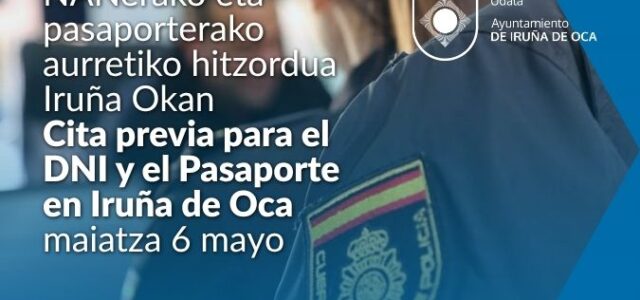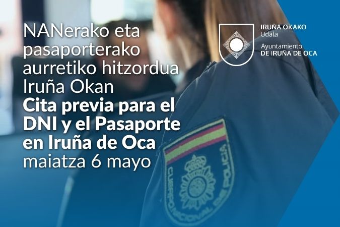 Cita previa para el DNI y el Pasaporte en Iruña de Oca el 6 de mayo