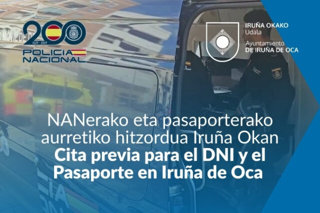 Cita previa para el DNI y el Pasaporte en Iruña de Oca el 15 de diciembre