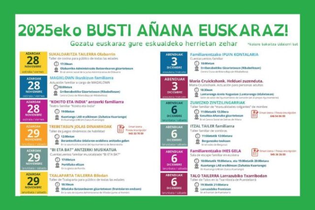 Gozatu euskaraz gure eskualdeko herrietan zehar. Talleres, magia, teatro, cuentacuentos, danza y mucho más para disfrutar del euskera en familia…