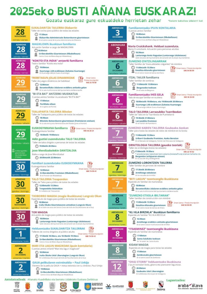 Talleres, magia, teatro, cuentacuentos, danza y mucho más para disfrutar del euskera en familia por toda la Cuadrilla de Añana.