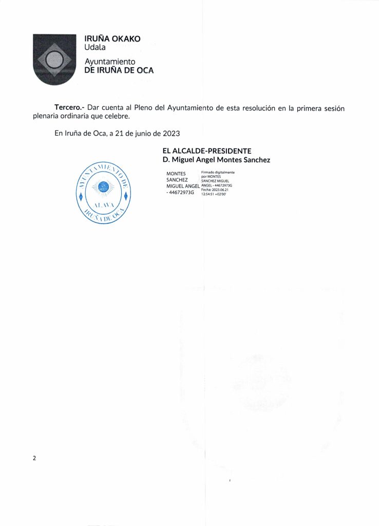 Segundo.- Notificar la presente resolución a todos los miembros de la Corporación Municipal y publicar en la página web municipal.