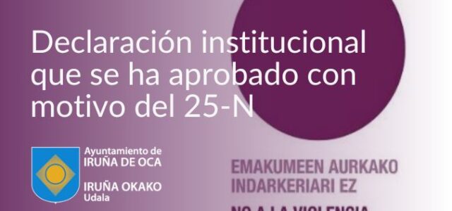 Con motivo del 25 de noviembre, el Ayuntamiento de Iruña de Oca reafirma su compromiso en la lucha contra la violencia machista y rechaza enérgicamente cualquier intento de banalizarla o […]