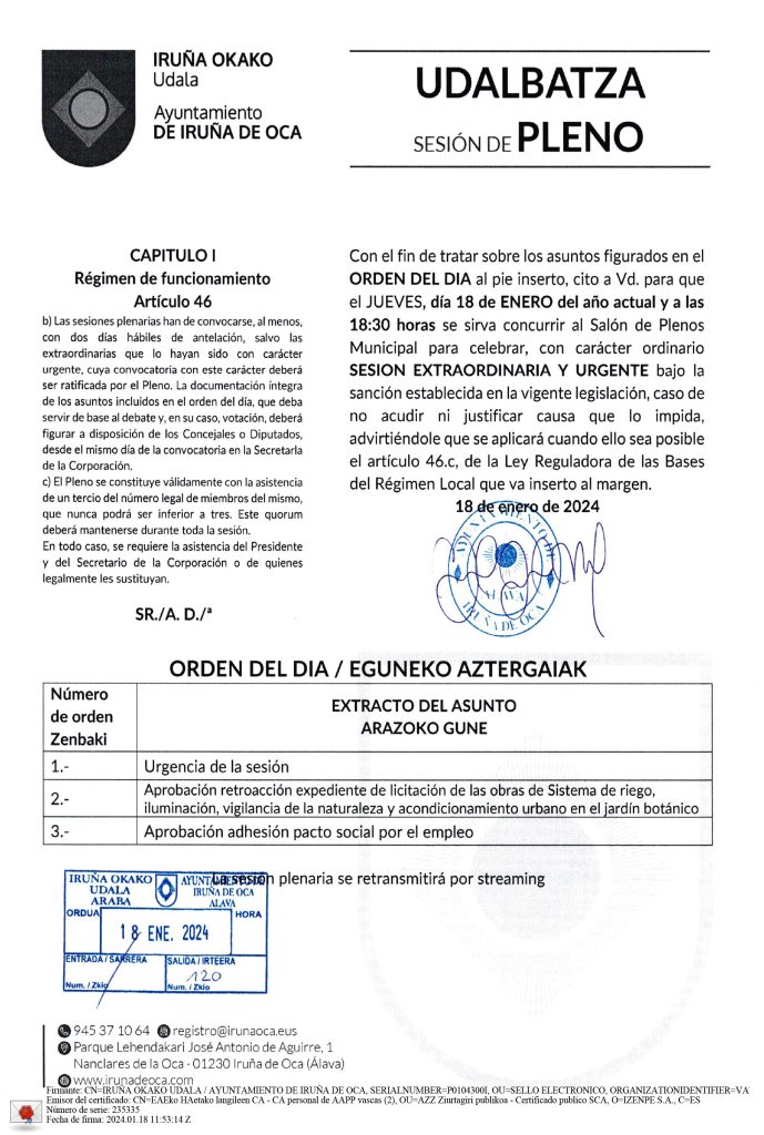 El próximo JUEVES 18 de enero de 2024 a las 18:30 horas, en el salón de plenos del Ayuntamiento, se celebrará un pleno extraordinario y urgente con el siguiente orden del día: