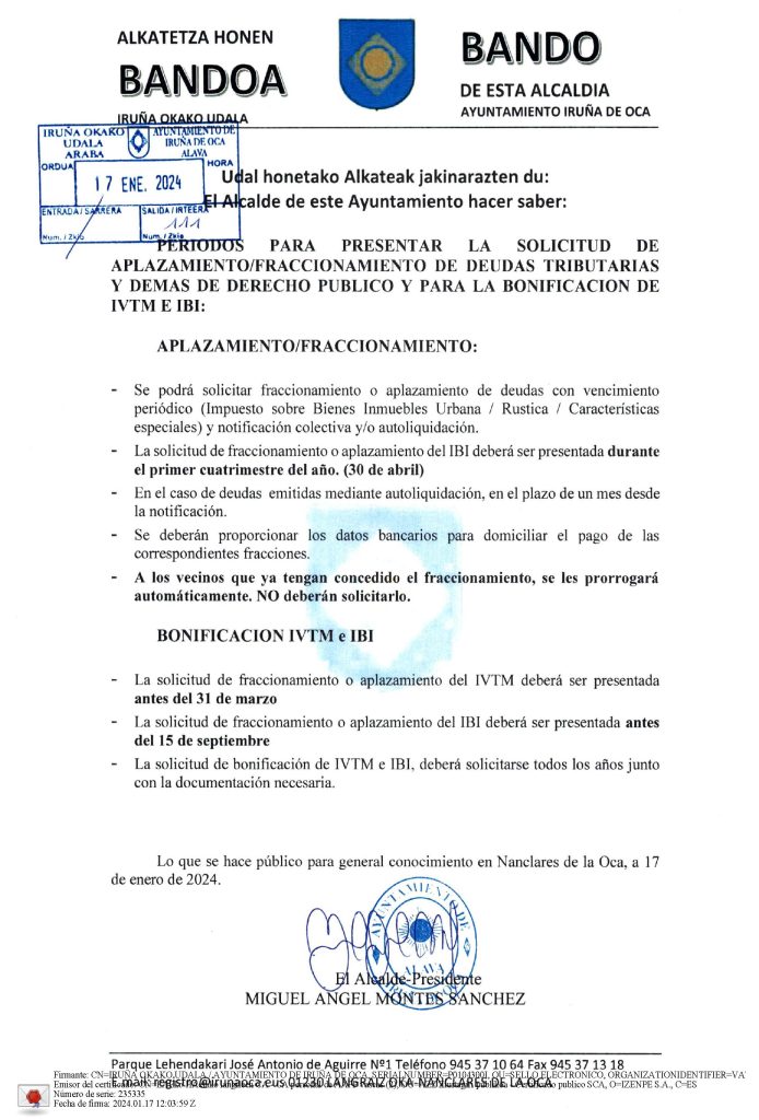 El Alcalde de este ayuntamiento hace saber: