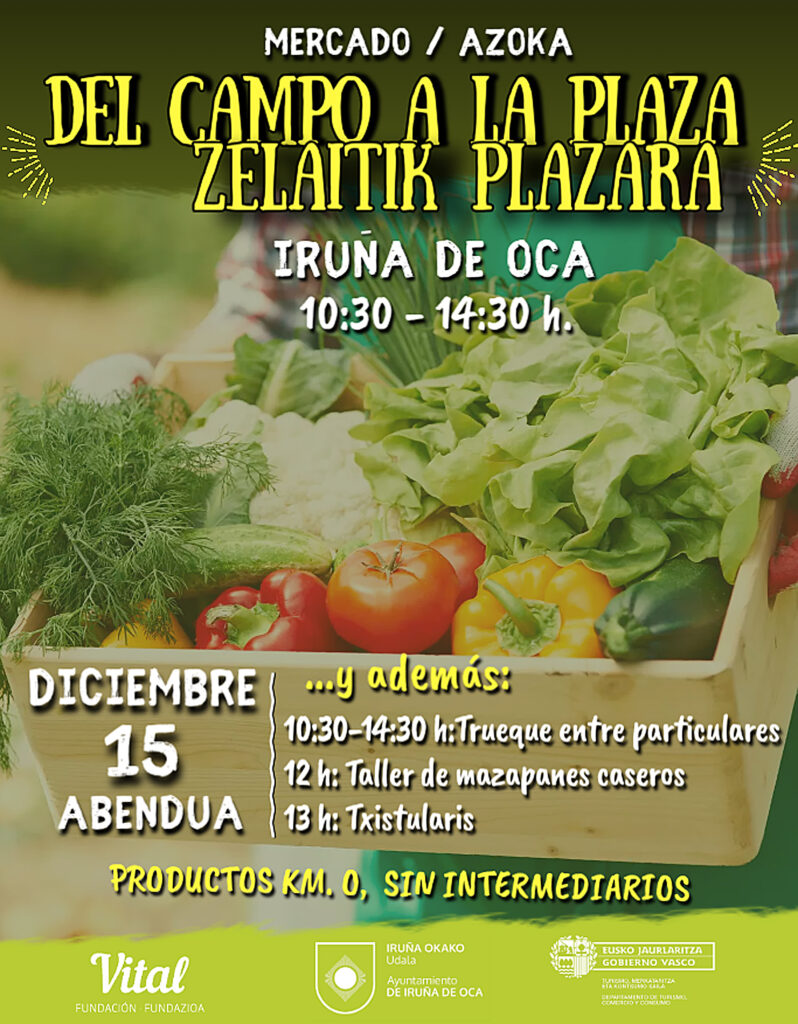 Iruña Okako Udalak «Del Campo a la Plaza» azoka tradizionala antolatu du abenduaren 15ean, 10:30etik 14:30era, Agirre Lehendakariaren plazan. Gertaera hau hurbileko produktuetan duen ikuspegiagatik nabarmentzen da (0 km), kalitatea eta bitartekarien ezabapena bermatuz.