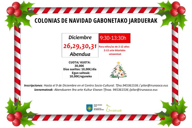¡COLONIAS DE NAVIDAD 2025-26 en Iruña de Oca! 🎄✨ ¿Buscas plan para los peques estas vacaciones? Apúntalos a las GABONETAKO JARDUERAK 🎅 📅 Fechas: 26,